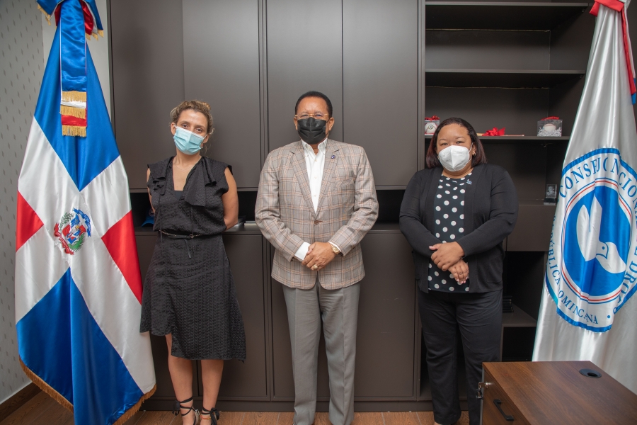 La comisión visitante estuvo conformada por la Sra. Tonya Ayow, subdirectora de CARICOM IMPACS; la Sra. Josefina Otero, oficial de programa en UNODC GMCP; y la Sra. Francesca Caonero, coordinadora de programa en UNODC GMCP, quienes socializaron con Marte Martínez sobre la creación de estrategias para mejorar para la seguridad marítima en la cuenca del Caribe y República Dominicana, con miras a asegurar que las diversas actividades en el dominio marítimo creen un espacio seguro para una economía próspera en toda la región.