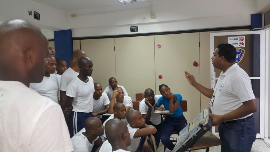 SAN CRISTOBAL, HATILLO.- Como parte de la formación integral de los miembros de la Policía Nacional, el departamento de prevención en el área laboral del Consejo Nacional de Drogas, realizó conversatorios simultáneos con los pelotones de la promoción 124 de rasos de la Escuela de Seguridad Ciudadana de la Policía Nacional con el objetivo de sensibilizar a los participantes entorno a la prevención de drogas.